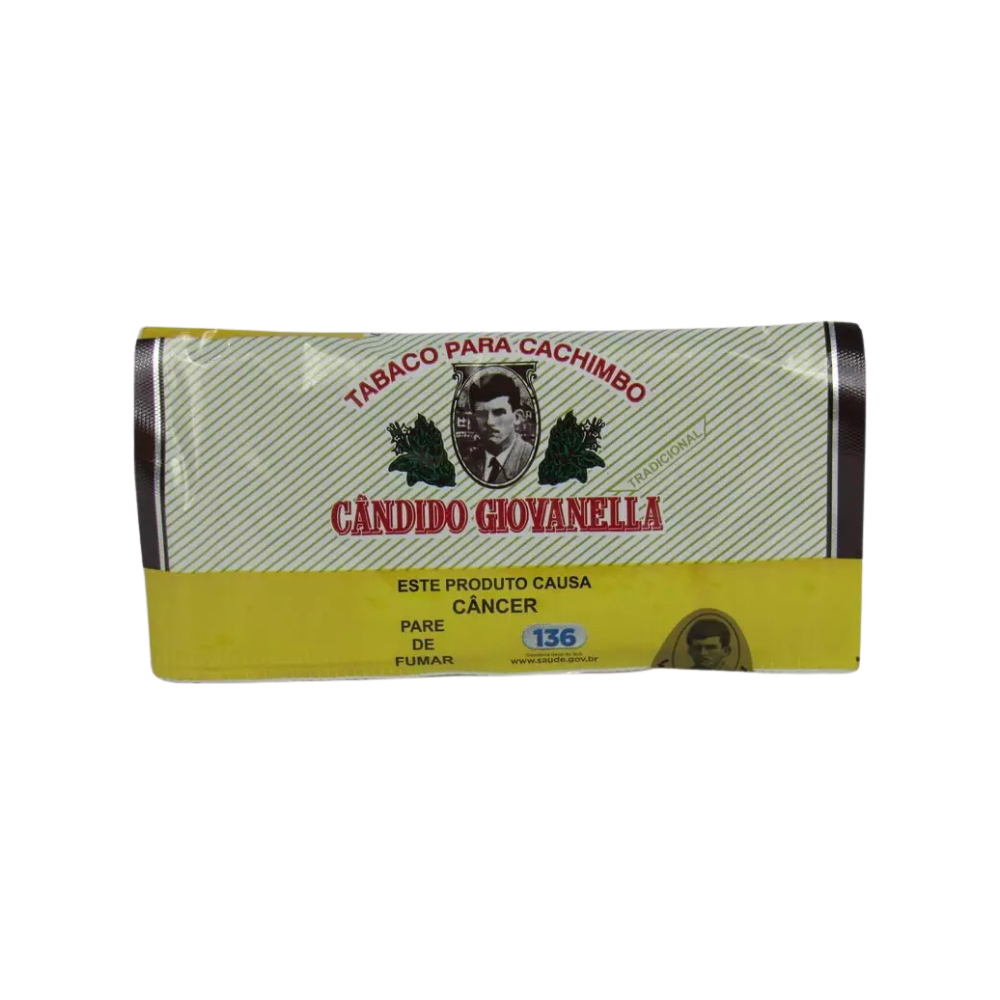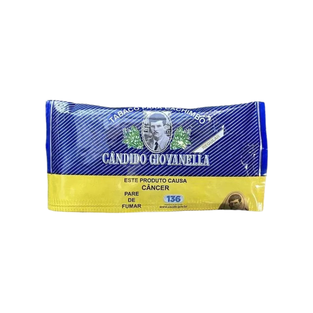 Tabaco Cândido Giovanella Regular 45g para cachimbo. Tradicional, suave e com aroma agradável.